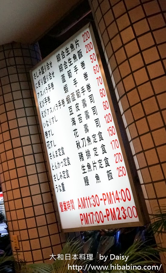 Daisy常常在用餐時間看見店裡充滿了用餐人潮,店外的價目表看起來也不貴。所以熱愛日本料理的Daisy就偷偷決定之後有機會一定要來吃一次!
