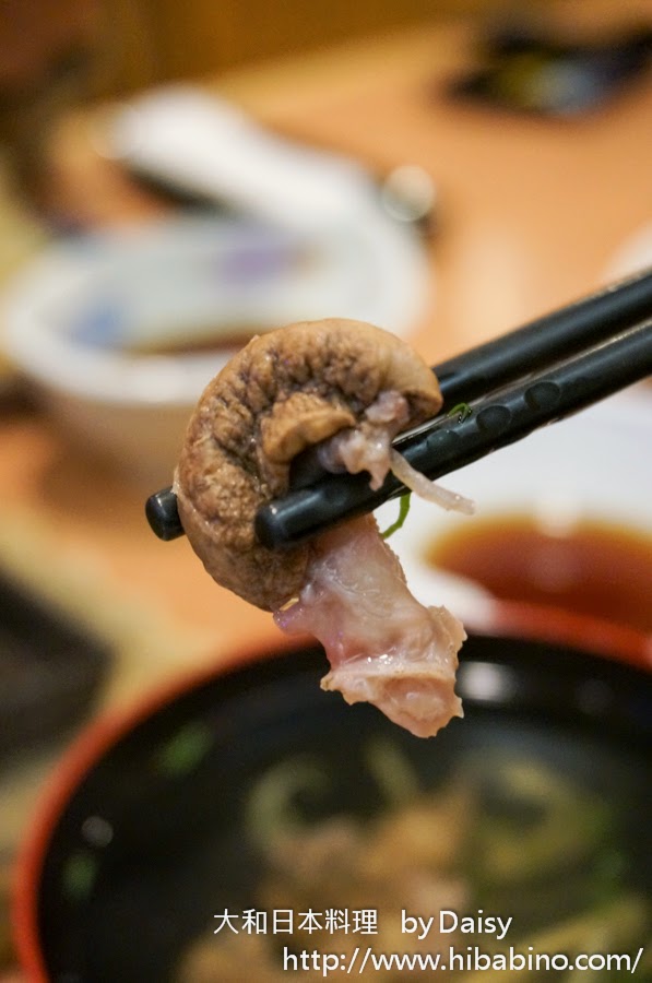 大和日本料理的湯頭因為牛肉的關係,所以帶了點濁濁的雜質。看起來不是很美觀,如果上桌前可以把這些雜質濾掉的話應該會讓他看起來好吃許多。
