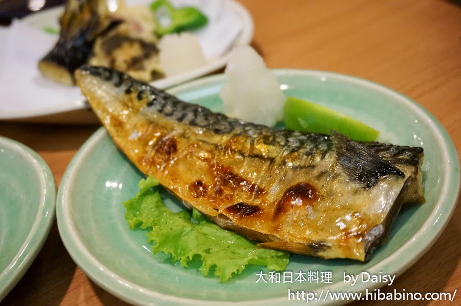 半尾的烤鯖魚,樣子烤得非常得吸引人,帶點焦焦的金黃色,加點檸檬搭配魚肉放入口裡,是細緻的口感和清爽的味道。