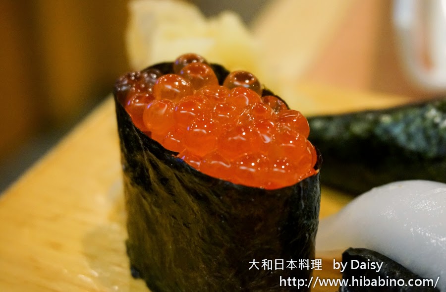 握壽司分有上跟極上握壽司,因為第一次吃大和日本料理,所已僅點了較平價的握壽司(上)。一份$270的握壽司,共有7顆握壽司與一海苔飯手捲。握壽司的大小不大,醋飯還蠻好吃,不過魚肉就表現較普通。P.S. Daisy最近好愛軟絲握壽司的口感 XD