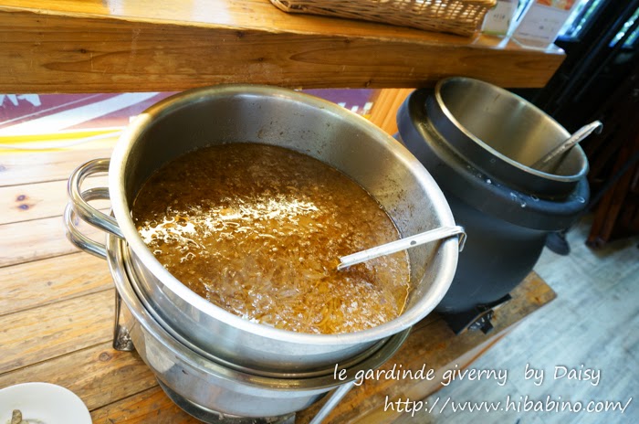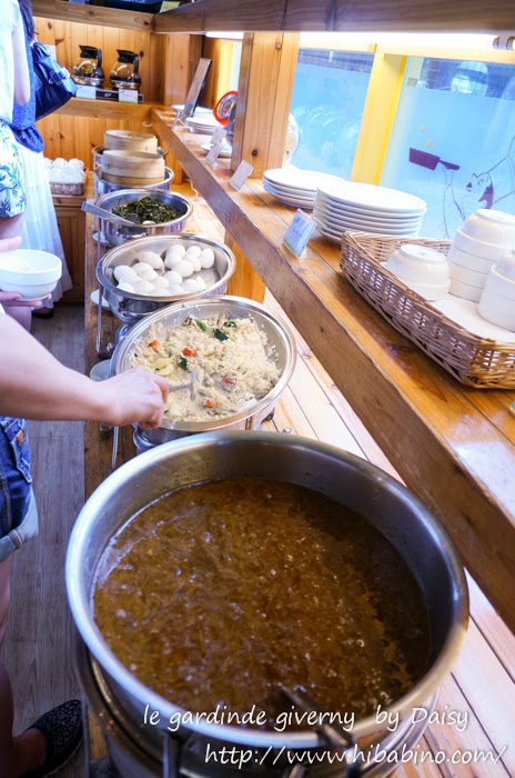 果汁類也都是現打的,可以看見果汁的顏色都很鮮豔,有紅蘿蔔也有紫高麗菜...等,在外面買一杯都超貴的,在吉凡尼的花園是喝到飽!